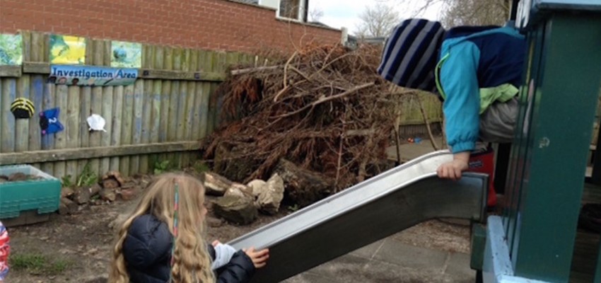 It is set out to encourage the children to explore and investigate with lots of dens, houses, a mini beast area, fairy glen and even a mud kitchen with a large climbing frame to encourage large motor skills.