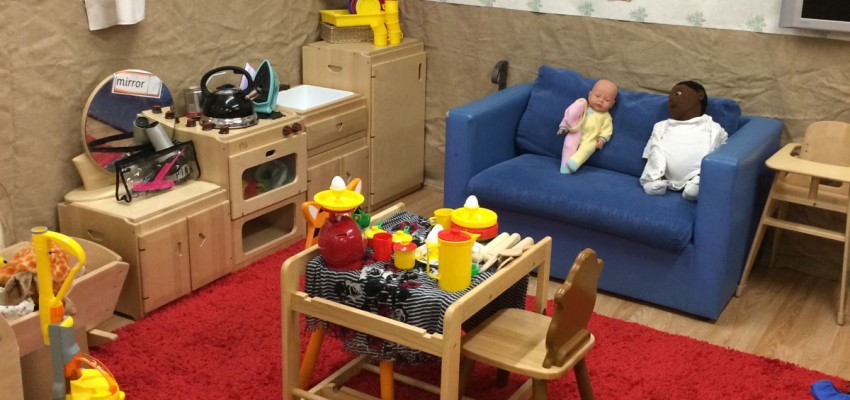 The room has two large, floor to ceiling windows to let in natural light giving wonderful views of the playground and field. At the entrance we have a separate garden just for babies, which has astro turf, decking seats and tyres planted with a range of herbs and fruits.